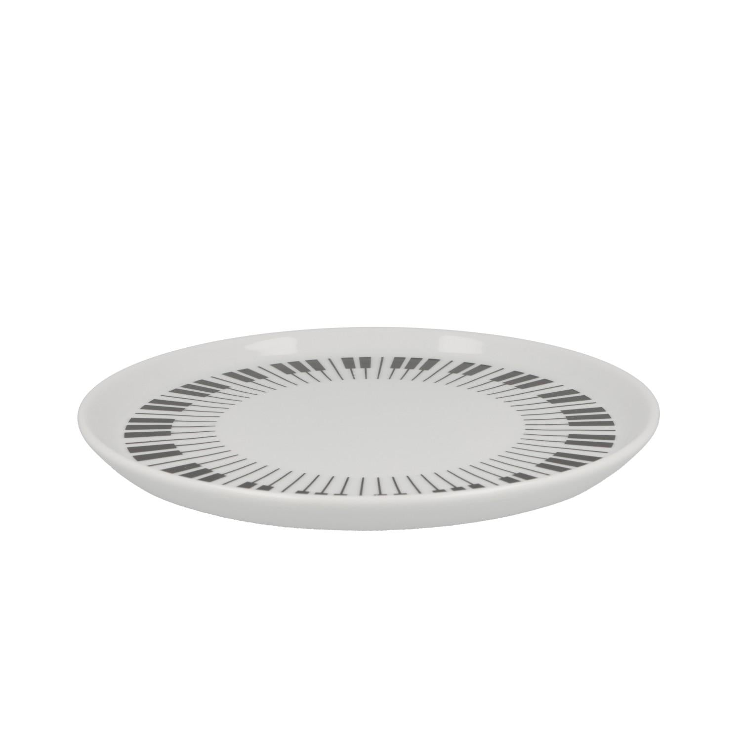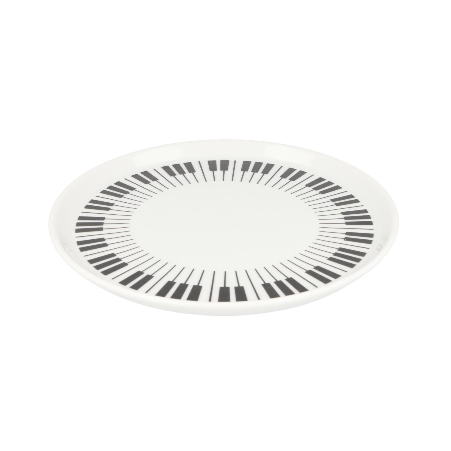 Musikalischer weißer Teller mit schwarzem Tastatur Druck