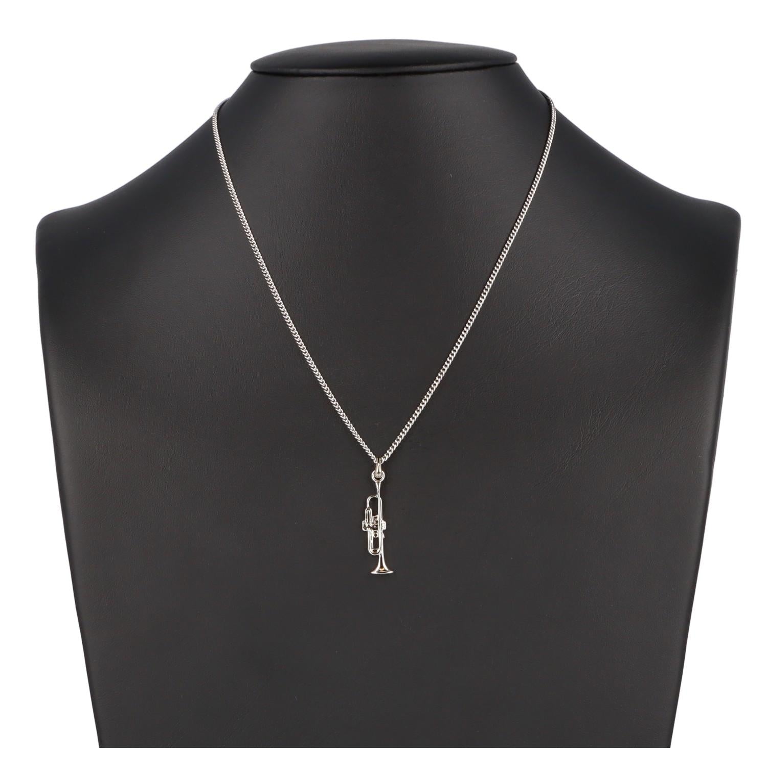 Trompete-Anhänger, mit Kette, versilbert oder vergoldet