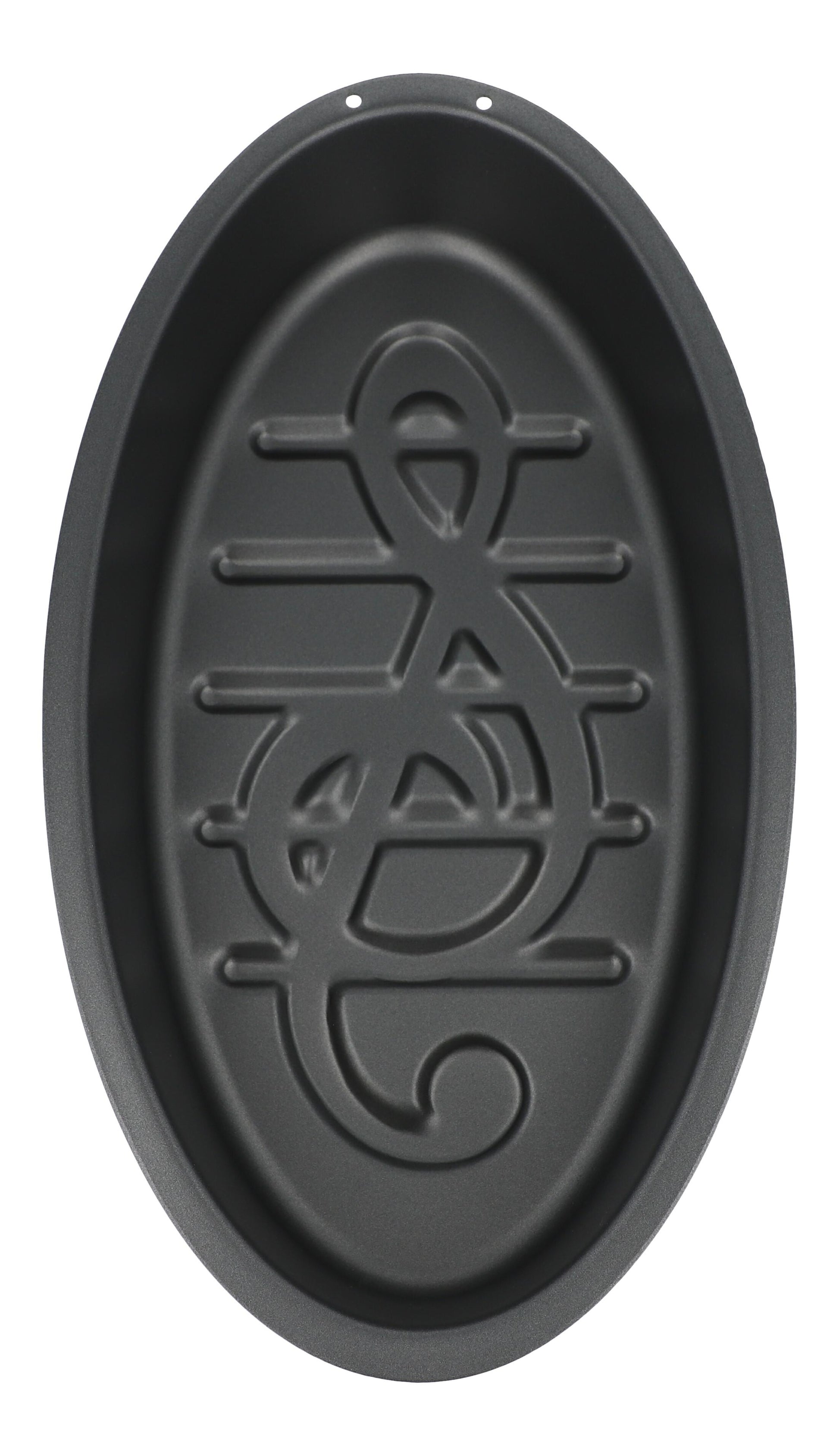 ovale Backform mit Violinschlüssel und Notenlinien auf dem Boden für einen formschönen Kuchen