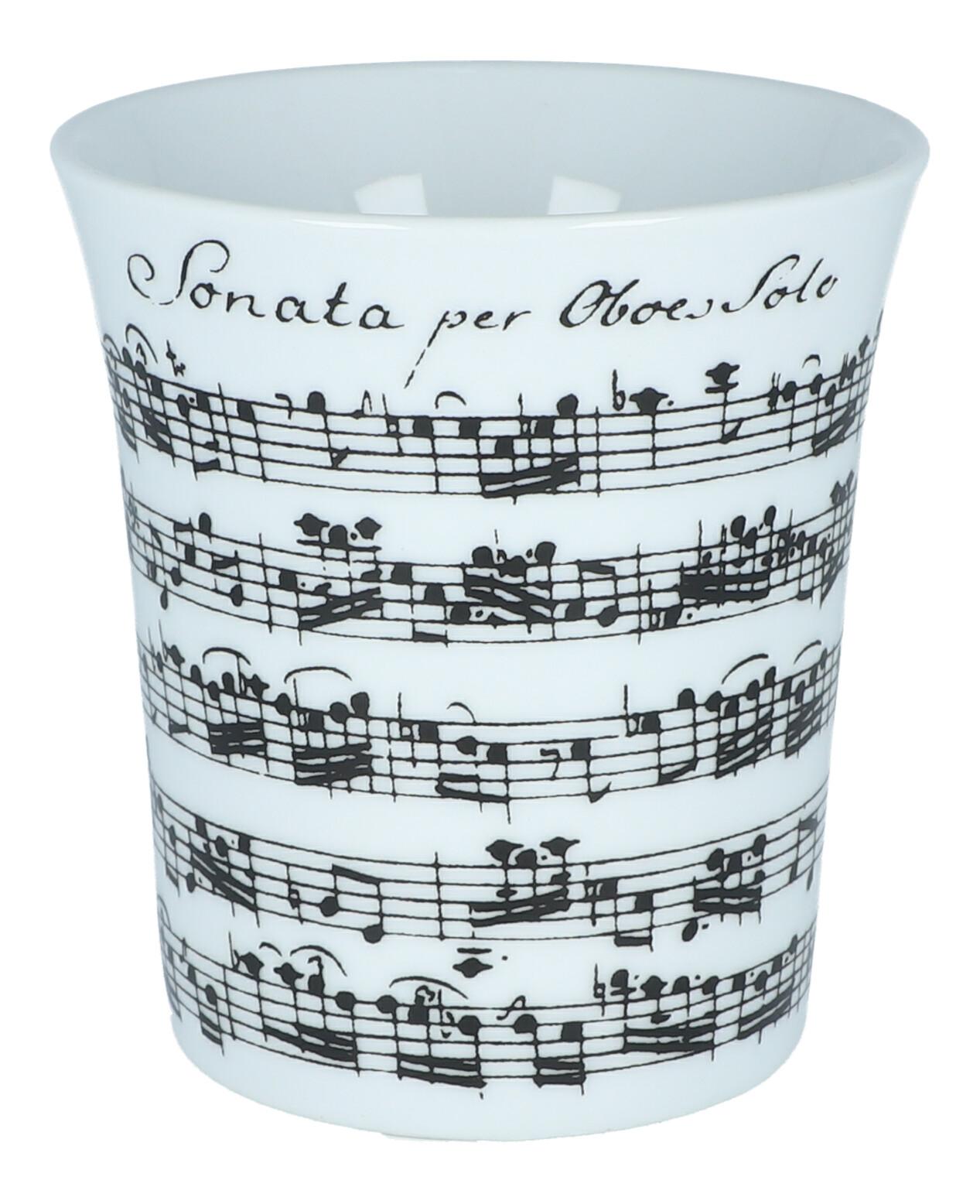 Porzellanbecher VIVALDI, schwarze Noten auf weißem Grund zu Vivaldis Musikstück